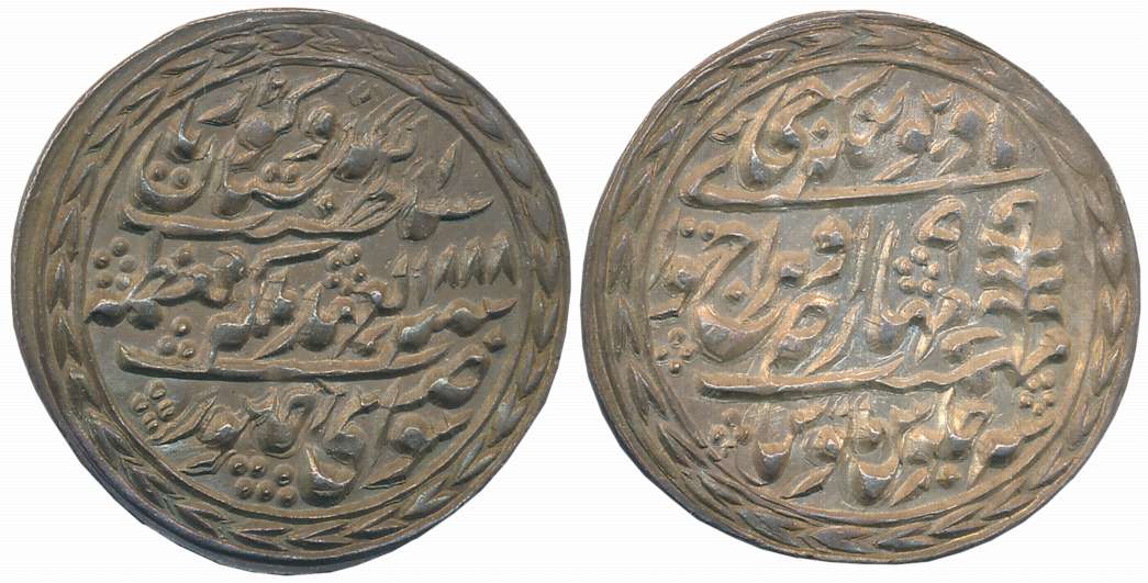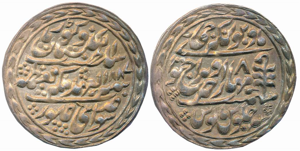 Sawai Madho Singh II, Silver Nazarana Rupee, 11.44g, Sawai Jaipur Mint, with the name of Queen Victoria, AD 1889/ RY 10, Jhar as mint mark (KM# 147, JAI# 133). About uncirculated, rare.