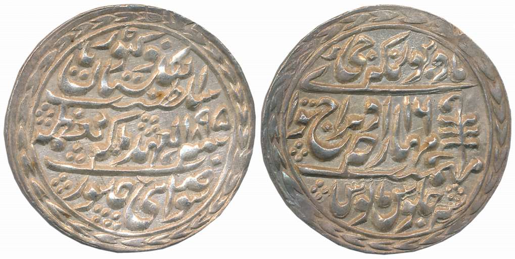 Sawai Madho Singh II, Silver Nazarana Rupee, 11.43g, Sawai Jaipur Mint, with the name of Queen Victoria, AD 1896/ RY 17, Jhar as mint mark (KM# 147, JAI# 133). Deep bold strike, about uncirculated, rare.