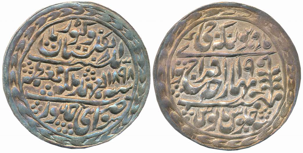 Sawai Madho Singh II, Silver Nazarana Rupee, 11.44g, Sawai Jaipur Mint, with the name of Queen Victoria, AD 1901/ RY 22, Jhar as mint mark (KM# 147, JAI# 133). Deep bold strike, about uncirculated, rare.