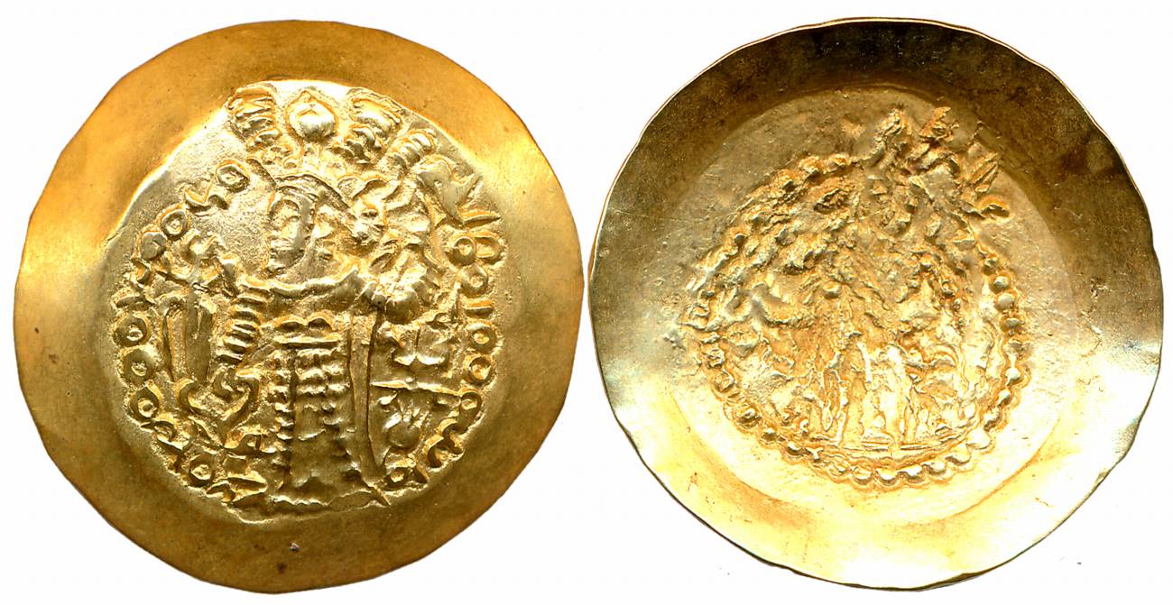 The reverse depiction is very interesting as it represents the ‘Abhisheka’ of Lakshmi scene, but with human attendants replacing the more familiar elephants. Although highly stylized, the representation is remarkable for its deviance from the norm.