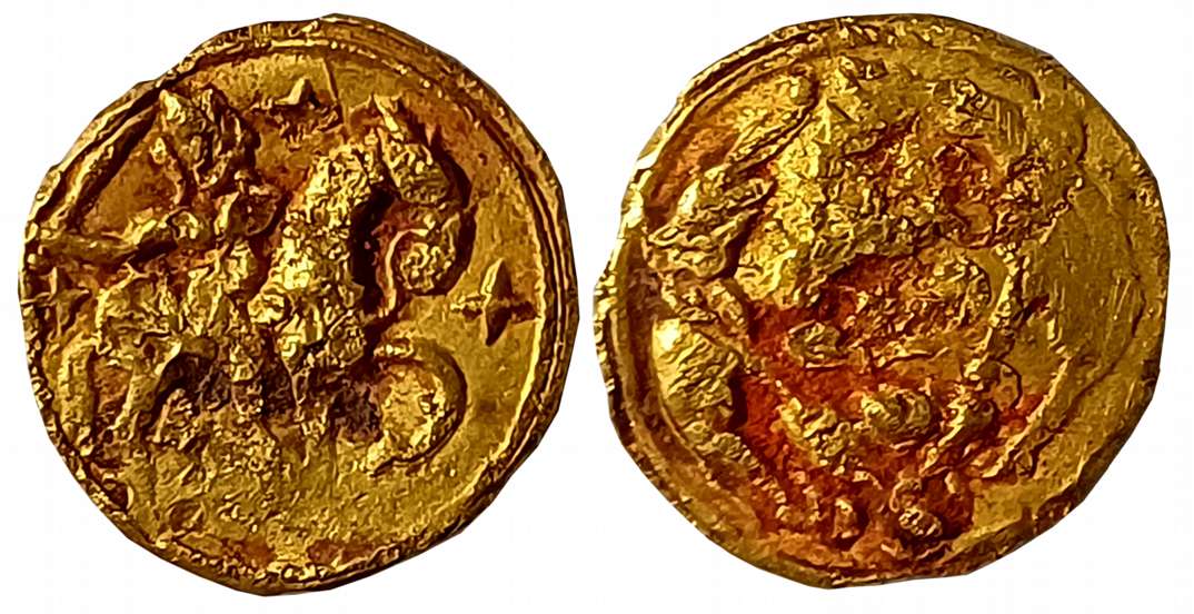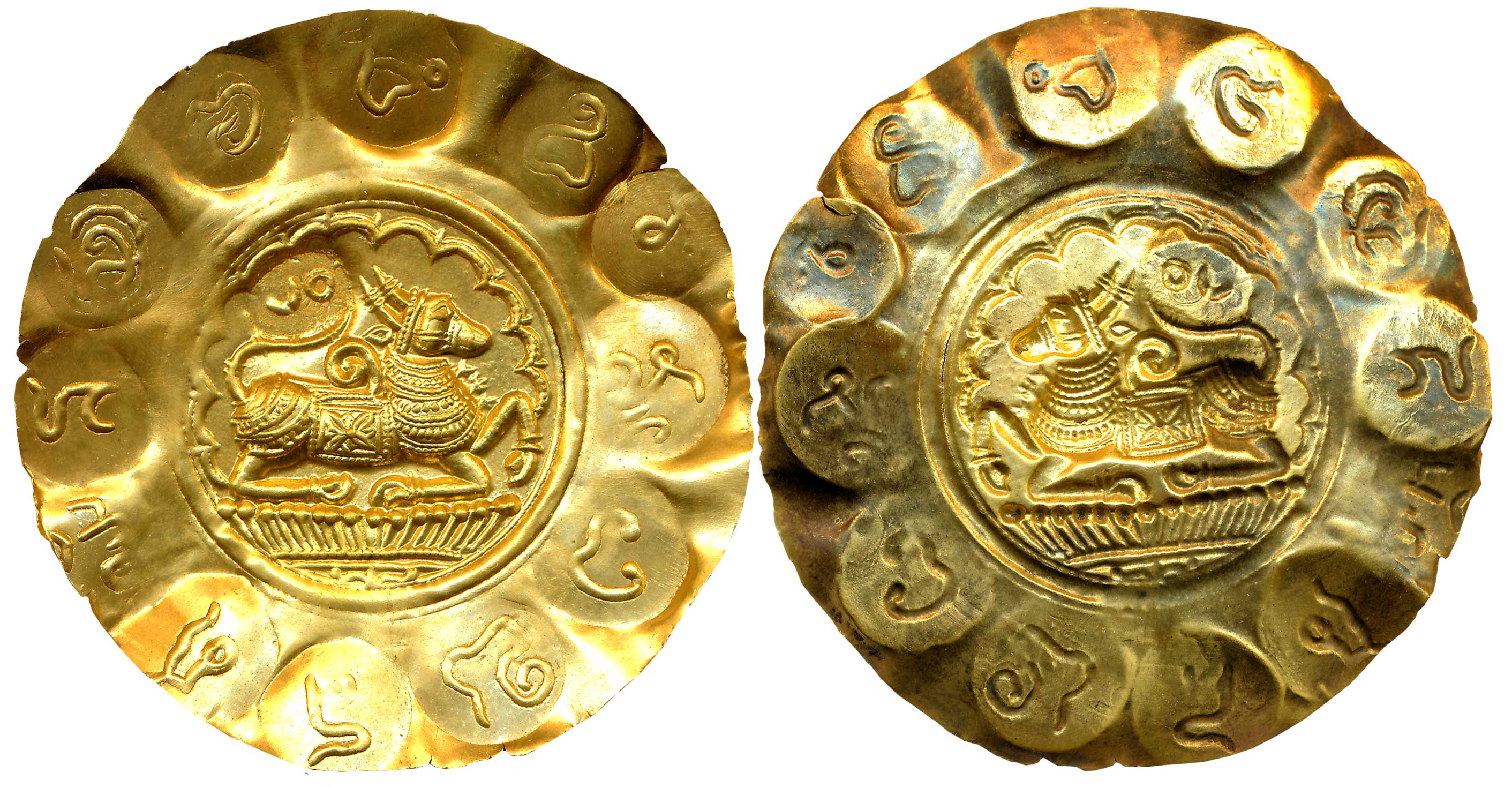 The obverse depiction of the king is comparable to ac recently known image of a local king from Humcha in Shimoga district, where he is described as master of a ball-game. Most likely the game referred to is polo. This is quite plausibly a numismatic depiction of a polo-playing monarch.