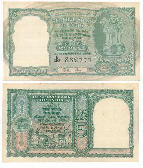 Rupees 2, “B-1”, Type 6.2.1, 1st Issue, Signed by B. Rama Rau, Prefix A/42 (R IPM # 6.2.1.1).