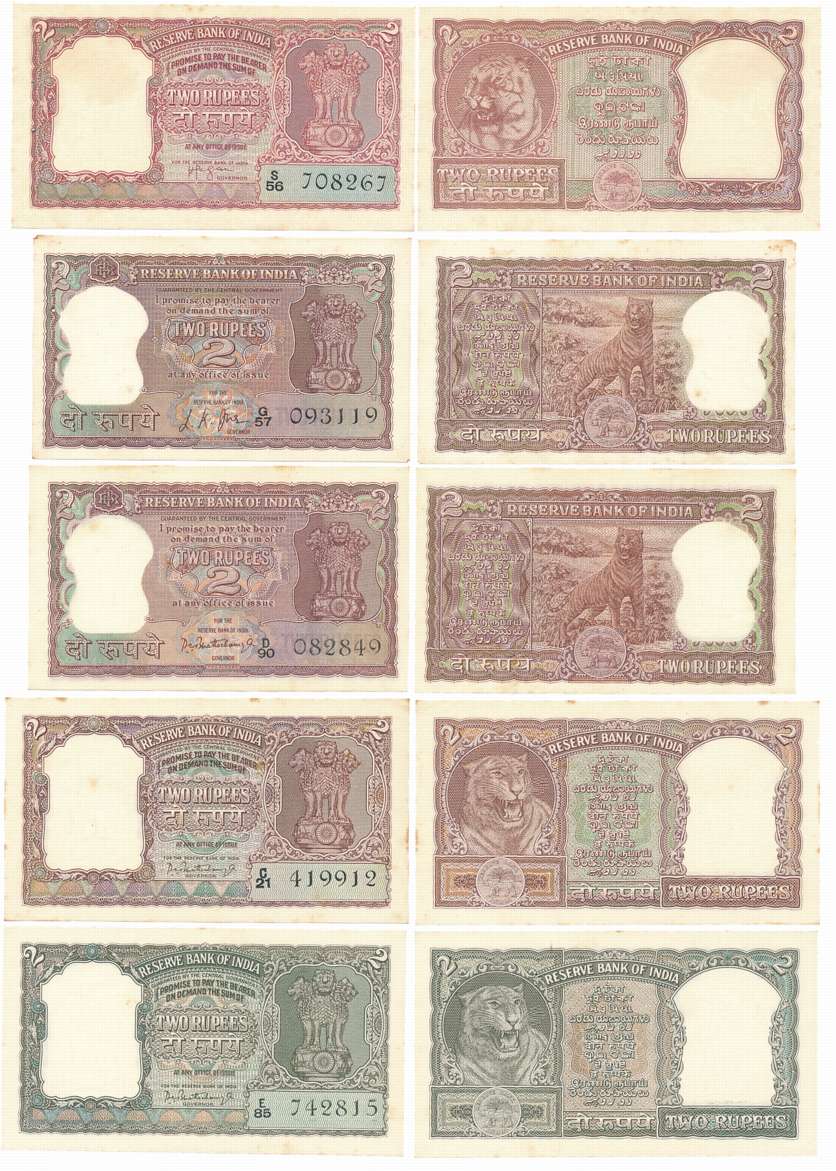 Rupee 1 (4), “A-4”, Type 6.1.3, Signed by K. G. Ambegaonkar, Prefix B/59 (R IPM # 6.1.3.1), Signed by H. M. Patel, “A-5”, Prefix T/61 (R IPM # 6.1.3.2A), “A-6”, Prefix E/67, inset A (R IPM # 6.1.3.2B) & Type 6.1.4, “A-7”, Prefix K/73, inset A (R IPM # 6.1.4.1A). 4 Notes.