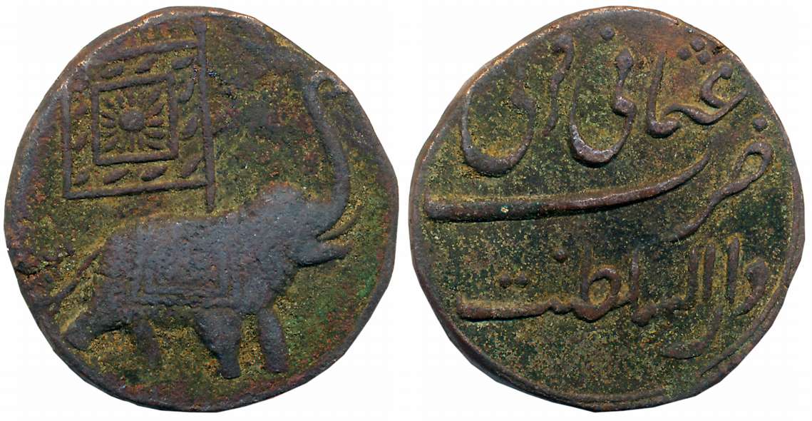 Ghorpade Chiefs of Guty, ‘Subbaraya’, Gold Fanam, 0.32g, possibly of Ramadurg Mint, Obv: Snake flanked by sun and moon, Rev: Devnagari legend Ram. Very fine+, very rare.