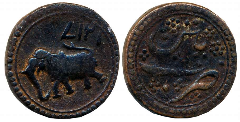 Tipu Sultan, Copper 2 Paisa- Usmani, 23.33g, Dar ul Sultanate Patan Mint, AM 1220 (retro), Obv: Elephant facing left, flag above, Rev: Mint name (KM# 124.1). Extremely fine, very rare.