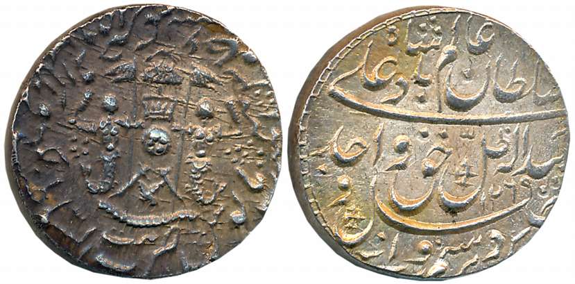 Thutab Namgyel, Copper Paisa, 5.23g, Obv: Legend “Sri Sri Sri/ Sikkim pati/ Maharaj” in three lines within square date below, Rev: Legend “Sri Shri Shri/ Sikkim/ Sakara” in three lines within square (KM# 1). Extremely fine for type, very rare in this grade.