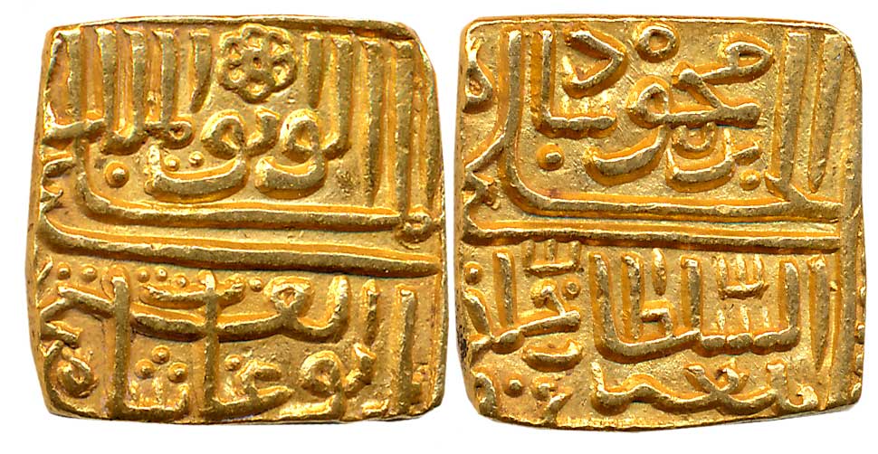 Ala al Din Mahmud Shah I, Gold Tanka, 10.98g, Hadrat Shadiabad Mint, AH 870, Date above Sultanahu & engraved, Arabic legend on both sides, Obv: “al sultan al a’zam abu’l muzaffar ala al dunya”, Rev: “wa’l din Mahmud shah al khalji Khallada allah sultanahu” (G&G# M23). Very fine, extremely rare.