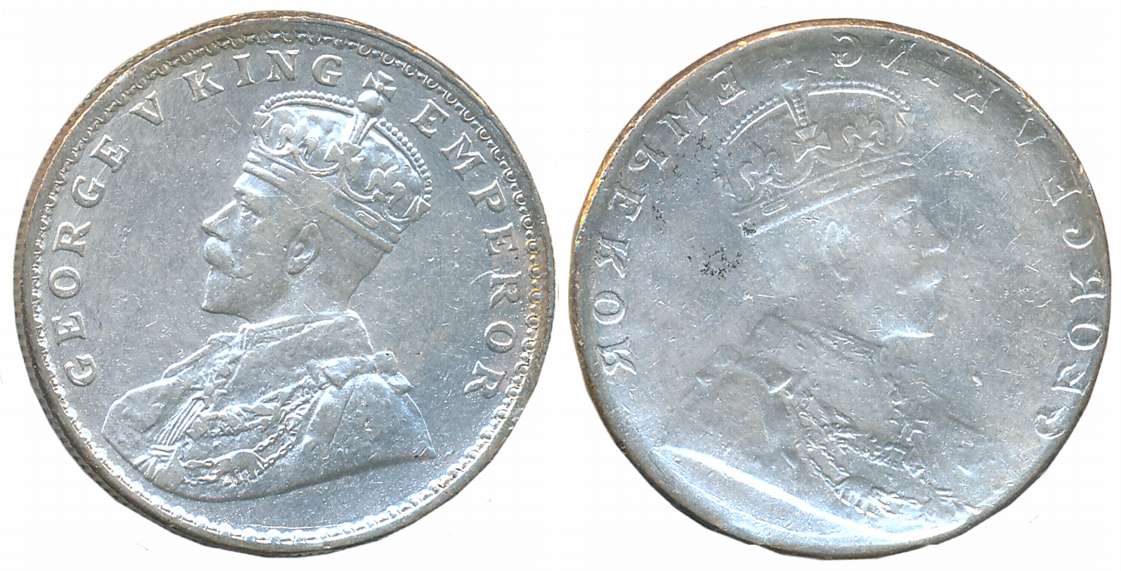George V, Set of 4 Silver, Restrike Proof, Rupee, 1/2 Rupee, 1/4 Rupee, 2 Anna, 1911, “Pig” type. Rupee NGC as PF 63, 1/2 Rupee PCGS as PR 63, 1/4 Rupee NGC as PF 63 & 2 Anna NGC as PF 62. Extremely rare as a complete set of 4 coins. Sir Bertrand Mackennal, the famed sculptor and engraver was commissioned to design the coins of new Emperor King George V. The crowned and regally decorated bust of the King appeared on the obverse side, while the reverse side had a floral design. Unlike the simple floral pattern of its predecessors, the new reverse side design screamed British Empire. This design featured the three emblems of the United Kingdom: The Rose of England, the Thistle of Scotland, and the Shamrock of Ireland. The Lotus of India appeared on the top. This side featuring the King’s bust depicted the “Order of the Indian Empire”, which was worn by the British sovereign. The golden collar chain of the Order was decorated with golden elephants, roses and peacocks. But due to poor engraving the coins’ “Elephant” looked like a Pig. The Elephant’s body and legs were quite disproportionate. No tusks were discernible, and the short trunk resembled a Pig’s snout. Thus these coins were called as Pig Rupee. So authority recalled these Pig Rupee for melting.