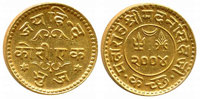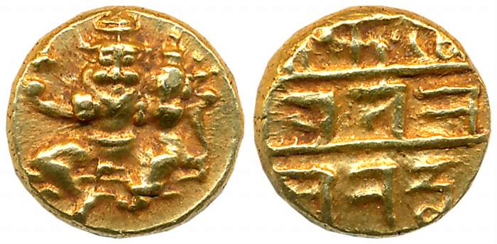 Rao Sri Lakhpatji I, Silver 1/2 Rupee, 5.68g, struck in the name of Ahmad Shah Durrani, AH 1169/RY 9, Obv: Couplet of Ahmad Shah Durrani “Hukm shud Qadar az bechun ba-Ahmad Badshah / Sikka zad bar Seem wa Zar az Awj Mahi ta ba-Mah” with date 1169, Rev: Persian legend “Zarb Bhujnagar sanah 9” within circle, Devnagari legend around “Miraja Raja Maharau Shri Lakhpati” separated by a Trident. Slab & Graded by NGC as MS 63. Recently sold at 6,25,000 Rupees in Indian Auction. This coin is a highly unusual piece of the Numismatic history of Kutch. The reign of Lakhpatji I is often considered to be a glorious epoch for the Jadeja lineage of Kutch, marked by peace and prosperity. However, the political picture across India was very different at this time – in the North the ambitions of the Marathas, the Rohillas and the courtiers of the Mughal court all clashed leading to a turbulent period. A key player in this was Ahmad Shah Durrani the Afghan ruler who desired to recover his claim on the Mughal subahs of Kashmir, Sindh and the Punjab. His expedition to upper Sindh in 1752 had already sounded alarm bells in Kutch. Probably as a measure to pacify the highly fearful Shah, Lakhpatji resorted to strike coins in his name, thereby nominally acknowledging his sovereignty. It is interesting to note that the dates on these ceremonial coins is AH1169 which is a year in advance of Ahmad Shah’s 4th invasion of India in which he occupied Delhi and staged a massacre at Mathura. Perhaps, Lakhpatji was being very cautious about the Shah’s intentions, which is a rare instance of political sagaciousness shown by a weak but prosperous ruler, to save his skin in view of an impending crisis.