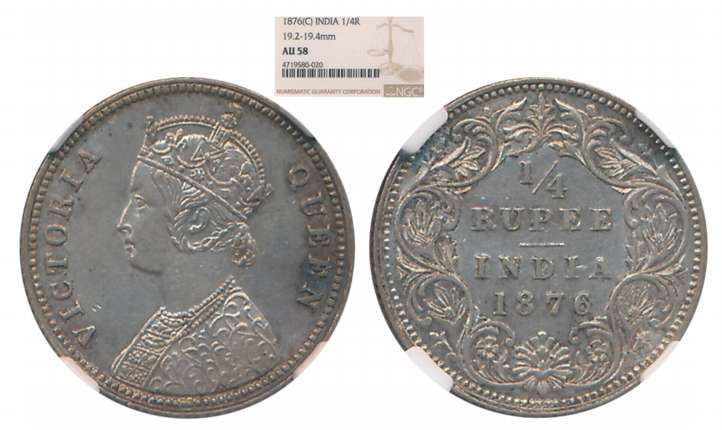 Victoria Queen, Silver Rupee, 1862, Madras Mint. Slab & Graded by NGC as MS 64.