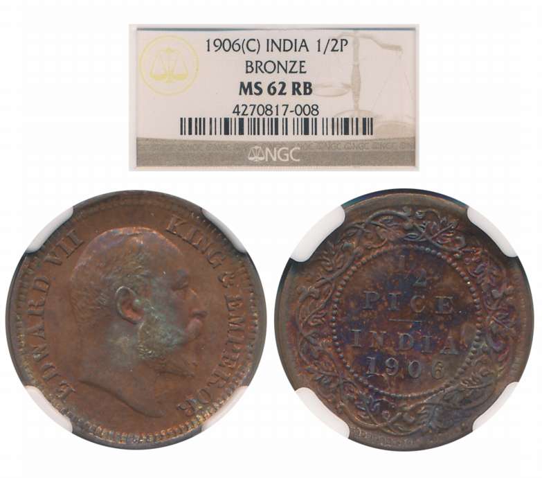 Victoria Empress, Silver 1/4 Rupee, 1898, Bombay Mint. Slab & Graded by NGC as MS 62.