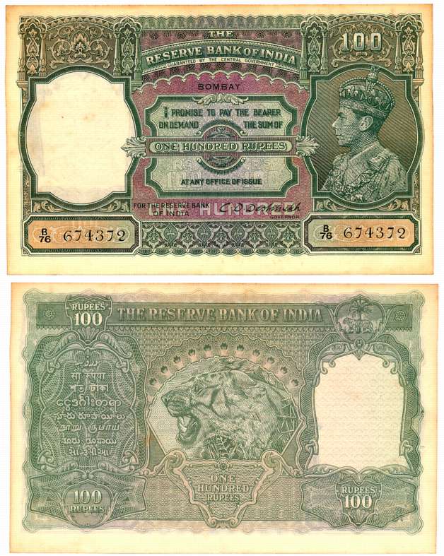 George VI, Rupees 10, 1st issue, Type 4.5, Signed J. B. Taylor, Prefix A/10 (R IPM# 4.5.1). Extremely fine.