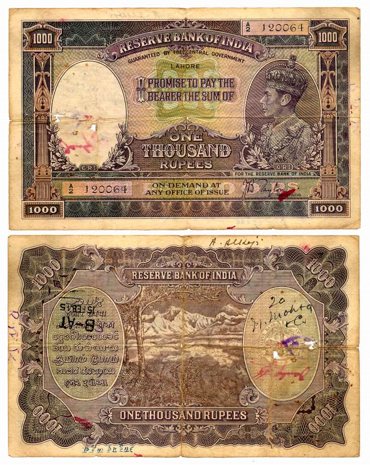 George VI, Rupees 100, Type 4.7, Signed C. D. Deshmukh, Bombay Circle, Prefix B/2, Serial number in Black (R IPM# 4.7.2A). Very fine+.