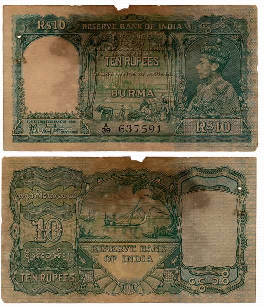 Burma Reserve Bank of India, George VI, Rupees 5, Type 5.10.2, Signed C. D. Deshmukh, Prefix R/5 (R IPM# 5.10.2). Uncirculated.
