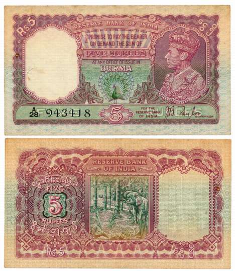 Pakistan Overprint, George VI, Rupees 10, Type.5.20, Signed C.D. Deshmukh, Prefix J/3, Serial number in Green (R IPM# 5.20.1). Marked with “PAKISTAN NOTE PAYMENT REFUSED”. Fine+.