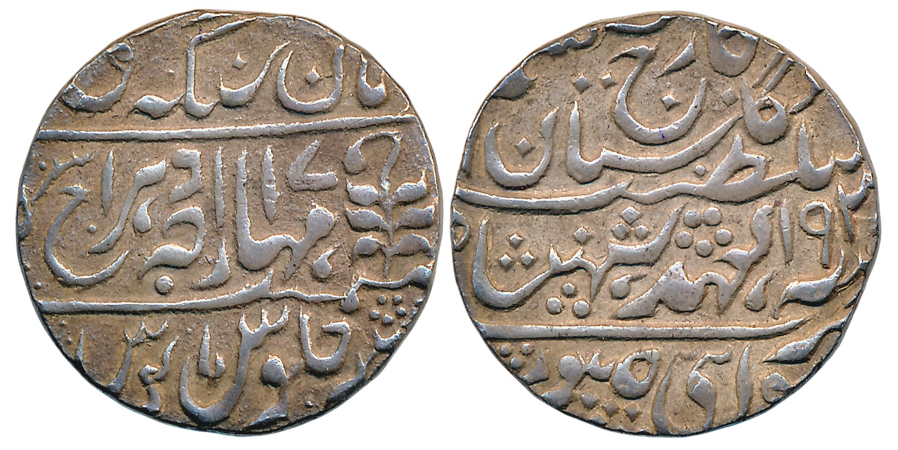 Madan Singh, Silver Nazarana Rupee, 11.34g, “Madan Sahi” series, AH 1915/ RY 22 (KM# Y# 6a). Some test scratches on obverse at 11 O’clock otherwise extremely fine, extremely rare.