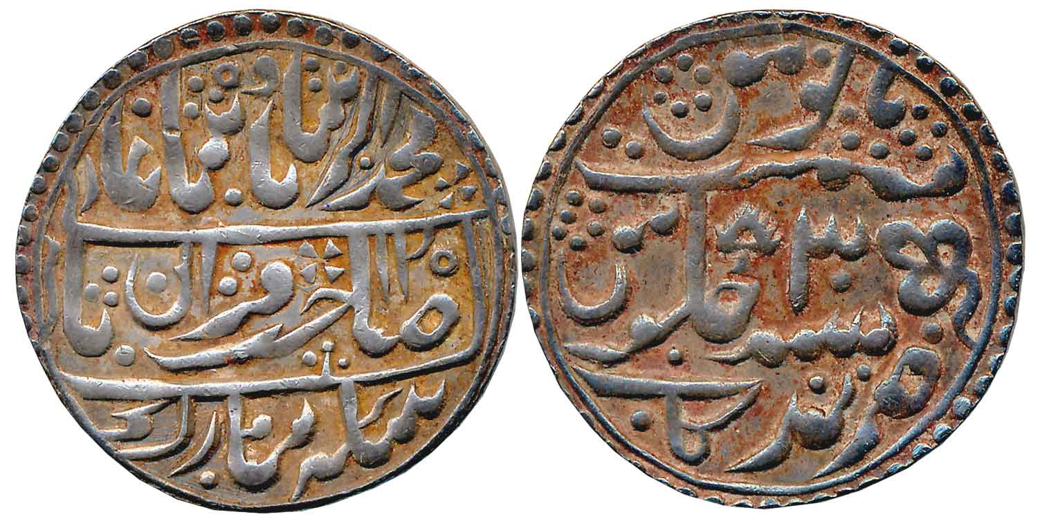 Ram Singh II, Silver Nazarana Rupee,11.28g, Nandgaon Mint, in the name of Bahadur Shah II, RY 4 (KM# C# 32a). Beautifully toned, about uncirculated, very rare.