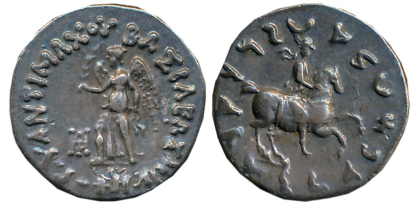 Indo Greeks, Lysias Aniketos, Silver Drachm, 2.54g, Obv: Helmeted, diademed, and draped bust right; Greek legend “BASILEOS ANIKETOU LYSIOU”, Rev: Herakles standing facing, crowning himself with wreath and holding club in arm draped with lion skin, monogram to left, Kharosthi legend “Maharajasa Apadihatasa…” around (BN series 4A). Very fine+, very rare.