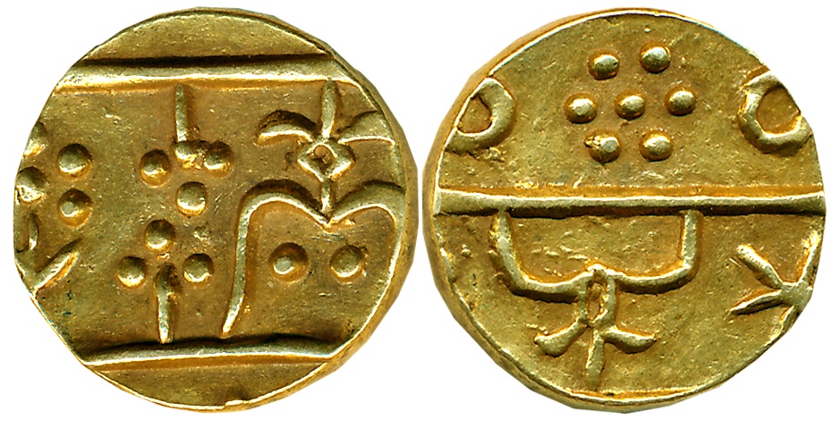 Krishna Raja Wodeyar, Silver 1/4 Rupee- Pavali, 2.81g, Mahisur Mint, AH 1226, in the name of Shah Alam II, Obv: Dancing figure of Goddess Chamundi, Rev: Persian legend (KM# C# 202). About uncirculated.