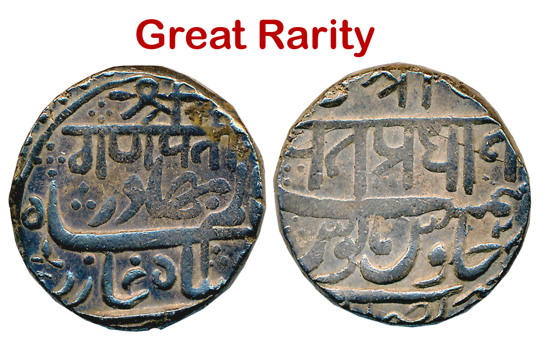 A highly unusual and rare square coin of Cuttack mint, under the Bhonsla rule. Similar round rupees were listed by P.P. Kulkarni ('Coinage of the Bhonsla Rajas of Nagpur', p. 135, Type 19). The calligraphy of the coins bears a striking similarity to the East India Company's coins of Murshidabad / Calcutta mints. It is not certain who was behind their issue; if the mint-name is 'real', the Bhonslas remain the best contenders but if it is a pseudo-mint name, i.e. the coins are struck at a place further North into the British realms they could well be East India Company issues. However, more proof is needed to substantiate this position. It is possible that this coin is a specially struck (“Nazarana”) issue. One more coin, with RY 22, of this shape exists in the American Numismatic Society’s collection.