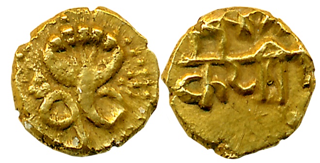 Tipu Sultan, Gold Pagoda- Hon, 3.43g, Khurshed Sawad (Dharwad) Mint, AM 1218 (retro)/ 8, both sides legend within dotted circle (KM# 99a). Uncirculated, extremely rare.