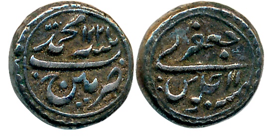 Ratna Manikya, Silver Tanka, 10.54g, Broad flan, SE1386, Bengali legend on both sides, Obv: Lion facing left, “Sri Sri Durga Radha Napta Vijaya Ratnapure Sake 1386” around, Rev: “Sri Narayana / Charana Para/ Sri Sri Ratna Ma/nikya Deva” in single square (R&B# 17). About extremely fine, extremely rare.