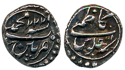 Vijaya Manikya, Silver Tanka, 10.61g, SE1482, Obv: Composite figure of Ardhanarishvara composed of half of ten handed Goddess Durga seated on her Lion and half Lord Shiva seated on Nandi, Rev: Bangla legend “Lakshya Snayi/Sri Sri Tripura Ma/ hesh/Vijaya Mani/kya Deva Sri Lakshmi/Rani Devyah” in five lines (R&B# 118). Very fine, extremely rare.