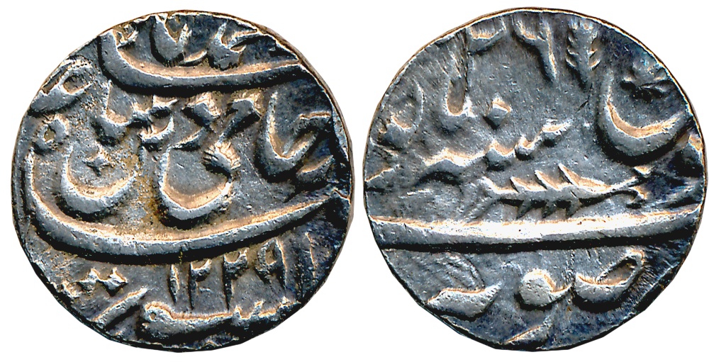 Khande Rao, Silver Nazarana Rupee, 11.44g, Broad flan, AH 1287 (KM# Y# 14.1). Extremely fine, rare.