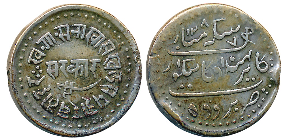 Surajmal, Silver Rupee, 11.29g, Broad Flan, Mahe Indrapur Mint, in the name of Alamgir II, AH 1174/ RY Ahad, Devanagari “Sa” on bottom of obverse (KM# 29). Beautifully toned. Extremely fine, rare.