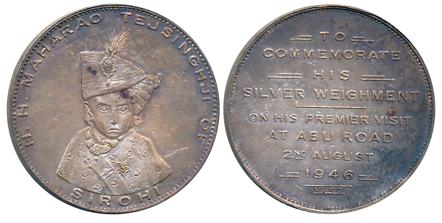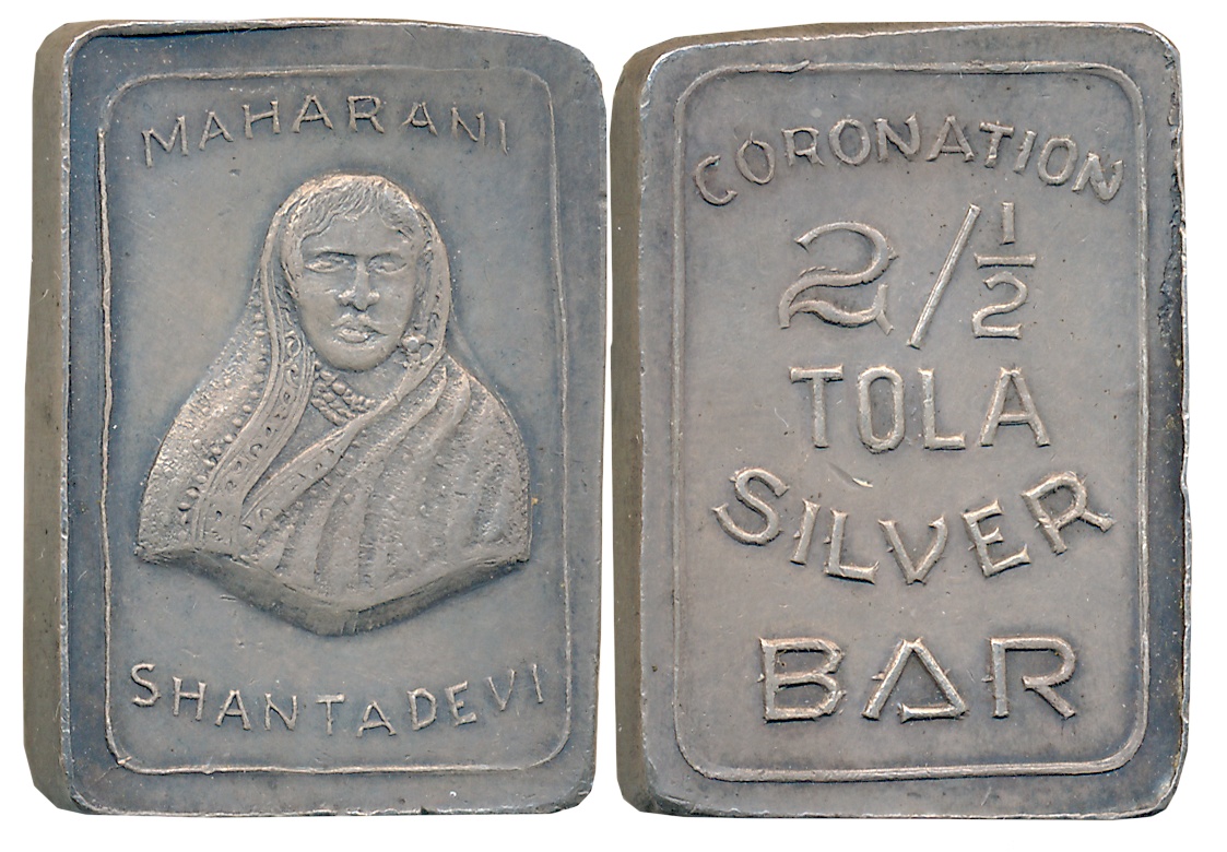 Sikkim, Silver Coronation Medal (Ser-thri Nga-sol Medal), 25.53g, instituted by Chogyal Chempo Palden Thondup Namgyal to commemorate his Coronation on 4th April 1965, Obv: State coat of arms of the Sikkim state in the centre, legend around "PALDEN THONDUP NAMGYAL" and date below 4 APRIL 1965, Rev: Mountains surrounded by legend in Tibetan script. With suspender. Extremely fine, rare.