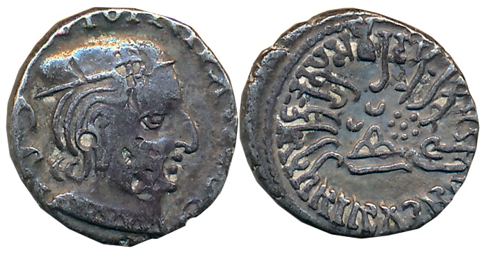 Guptas, Skanda Gupta, Silver Drachma, 2.22g, “Peacock-Madhyadesha” type, Obv: Profile bust of king, Rev: Fan-tailed peacock in centre, Complete Brahmi legend “Vijitavanir avanipati sri Skandagupto divam jayati” (S. Kumar, Var. A, No. 866). Extremely fine, rare.