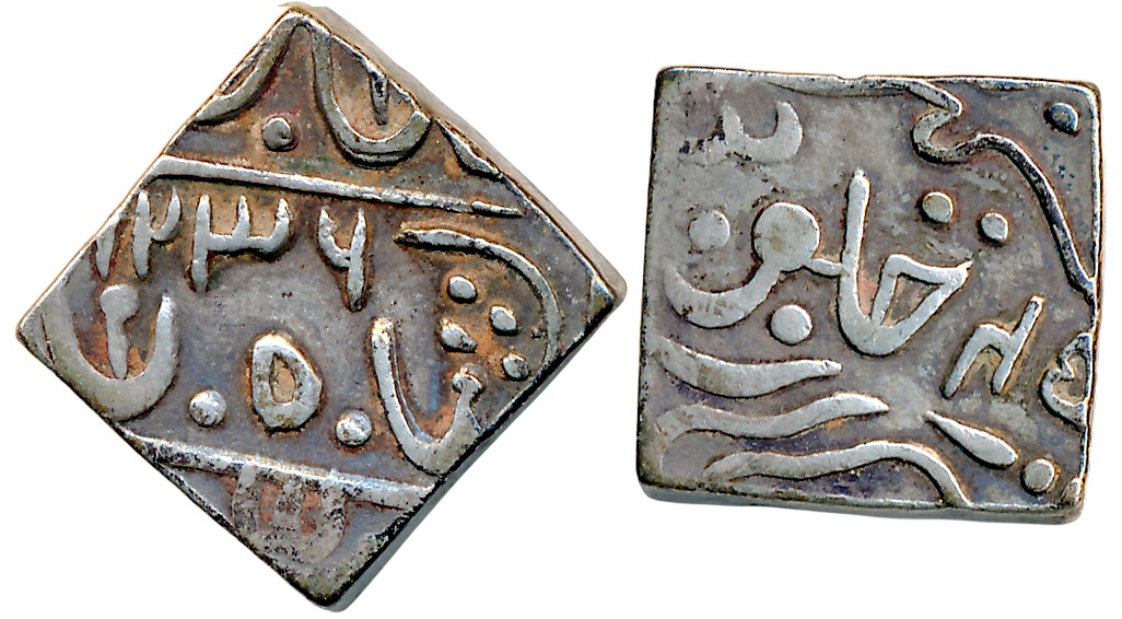 Bhupinder Singh, Gold 2/3 Mohur, 7.45g, VS (19)58, Sahrind Mint, in the name of Ahmad Shah Durrani, Katar as Mint mark on left, Persian letter “Suaad” in seen of Julus. Tiny edge crack otherwise very fine+, rare.