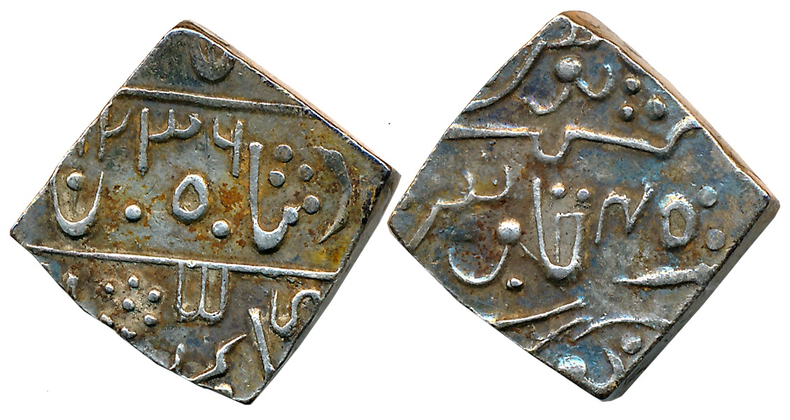 Zorawar Khan, Silver 1/2 Rupee- 8 Anna, 5.78g, with the name of Queen Victoria, AH 1286/ AD 1869 (KM# 10). Usual flatness on the edges otherwise very fine+, rare.