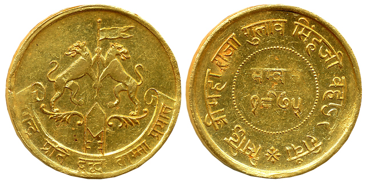 Muhammad Ibrahim Ali Khan, Silver Nazarana Double Rupee, 22.28g, Tonk Mint, AH 1298/ AD 1881, with the name of Victoria Queen, Obv: Persian couplet, AH date and the symbol of a “Kalangi (aigrette/ turban ornament) - Sikka Mubārak zad az Fazal Yazadān /Raees-i Tonk Ibrahim Ali Khan”, Rev: Persian legend “Dar al-Zarb Tonk Ahd-i Malika Mu’azzama Inglistan wa Qaisar-i Hind” (KM# Y21). Extremely fine, exceedingly rare. Nazarana Rupees and mohurs were struck by Ibrahim Ali Khan in 1880 and 1881 - however it is not yet certain which occasion prompted their issuance. The Nawab did get a son (his third) in 1880 but apart from this, not much of significance is known to have taken place.