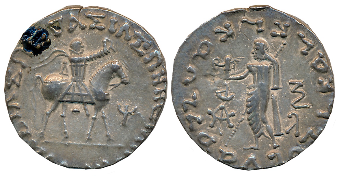 Kushan, Vasudeva, Gold Dinar, 7.80g, “Oesho” type, Obv: Nimbate king standing wearing armour and conical helmet, holding a standard and offering sacrifice at an altar, trident-standard with ribbons in the backdrop, Bactrian legend ‘Shaonano Shao Bazodeo Koshano’ around, Rev: Shiva with flaming halo reclining against Nandi, holding trident in one hand and a diadem in the other; Bactrian legend ‘Oesho’ to right and a Tamgha in the left field (Gobl# 509). Very fine, rare.