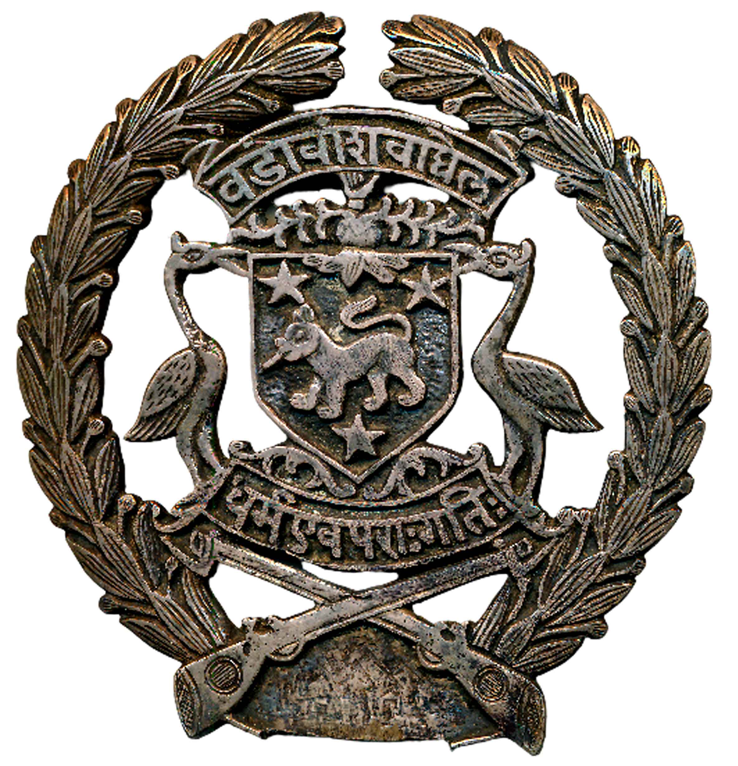 Patiala, Coat of arms of Maharaja Yadvinder Singh, 10.21g, Arms: Two daggers, a sword and a rifle proper, Crest: On a helmet affrontée an elephant passant, flag above, Supporters: A Lion and a bay Horse, each ensigned with an annulet, Motto: ‘Heaven's light our guide’. Very fine, extremely rare.