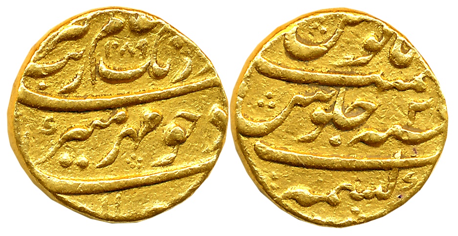 Jahangir, Silver Rupee, 11.44g, “Nur ud din” type, Agra Mint, Ilahi Month Bahaman, AH 1023/ RY 8 (KM# 145.1). Both sides legend within dotted circle. Very fine+, very rare.