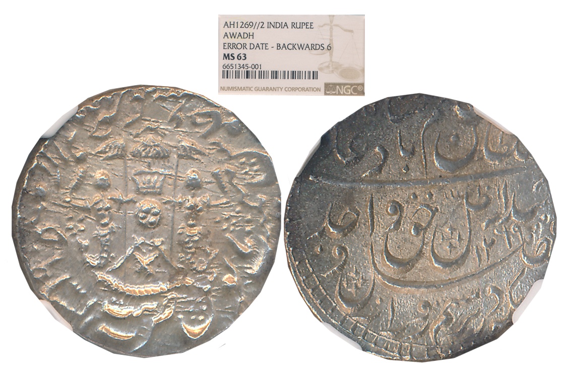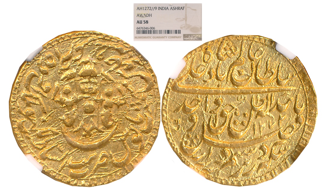 Amjad Ali Shah, Silver Rupee, 11.18g, Mulk Awadh Bait us Sultanate Lakhnau Mint, AH 1261/ RY 3, Crown above Fish on obverse (Master & Kapoor# 10.17). Extremely fine+.
