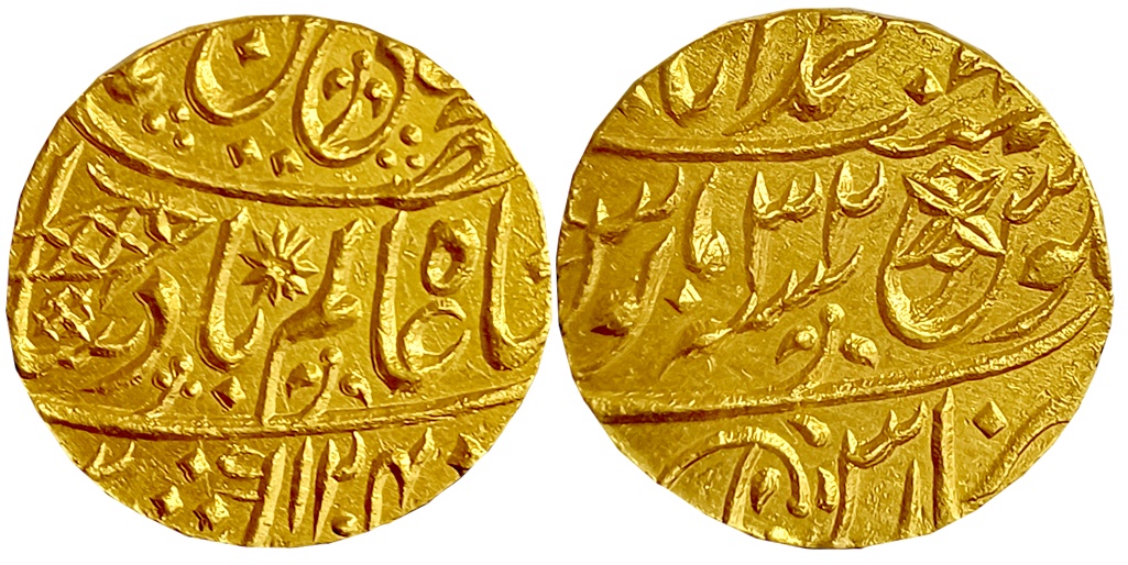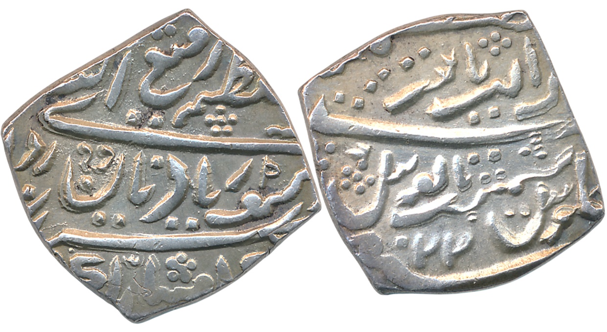 Wajid Ali Shah, Silver Rupee, Baitu us Sultanate Lakhnau Mulk Awadh Akhtarnagar Mint, AH 1269/ RY 6, Parasol above crown flanked by Mermaids holding flag crossed swords below on obverse (Master & Kapoor# 11.48). Slab & Graded by NGC as MS63.