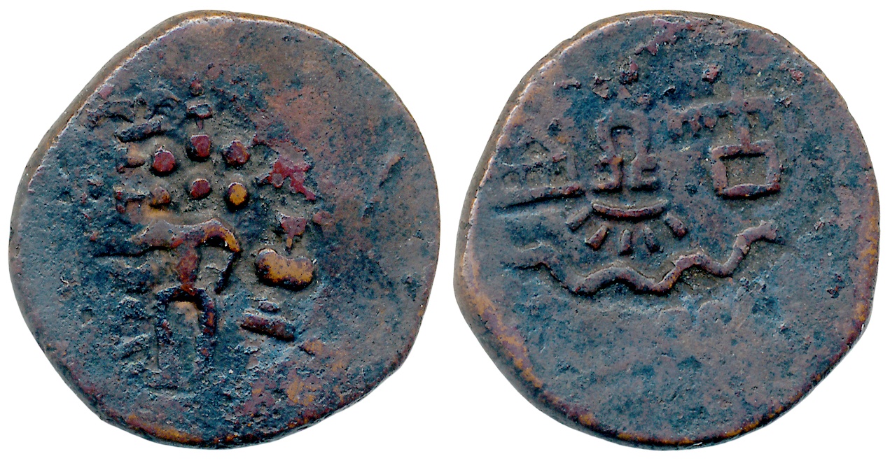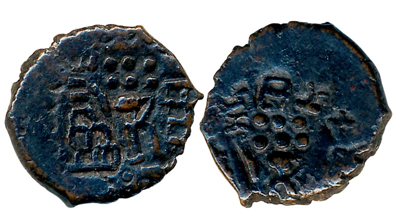 Tribal, Kunindas, Amoghabhuti, Silver Drachma, 2.36g, “Lakshmi” type, Obv: A Deer to right, three arched chaitya with parasol under Deer, Goddess Laksmi standing on Lotus seat facing, holding flower in uplifted right hand, “Rajnah Kunidasya Amogh [bhutisya]” around Brahmi legend, Rev: Six arched chaitya, tree in railing, swastika, Nandipada, triangular headed symbol and around Kharosthi legend (Pieper# 1200, D. Handa# Class II, type 2). Deep bold strike, extremely fine, rare in this grade.