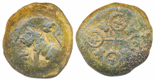 Satavahanas, Khada Satakarni, Potin, 3.13g, Elephant type, Obv: Elephant with upraised trunk facing right with Brahmi legend starting at 9 O’clock ‘Khada Satakani….’, Rev: Ujjain symbol. Fine, very rare. Coins of Khada Satakarni is a very rare