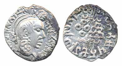 Satavahanas, Vidharbha, Copper, 4.38g, Obv: elephant stooping in obeisance before shrine, Rev: Ujjaini symbol in centre with traces of a legend (ACW # 5059). Very fine, scarce.