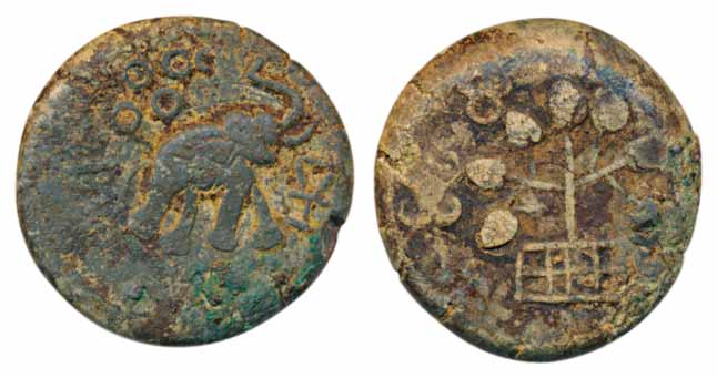 Sarabhapurias of Mahakosala, Prasannamitra, Gold, 1.3g, Repousse, bracteate; Garuda facing front between Shankha and Chakra, Brahmi legend below on obv, Uniface. About extremely fine, rare.