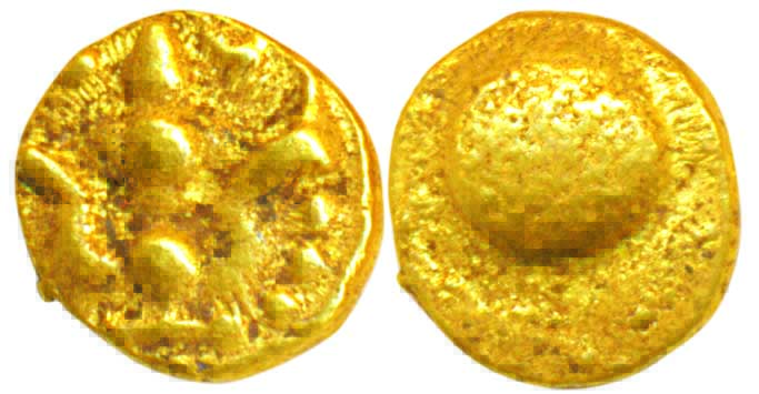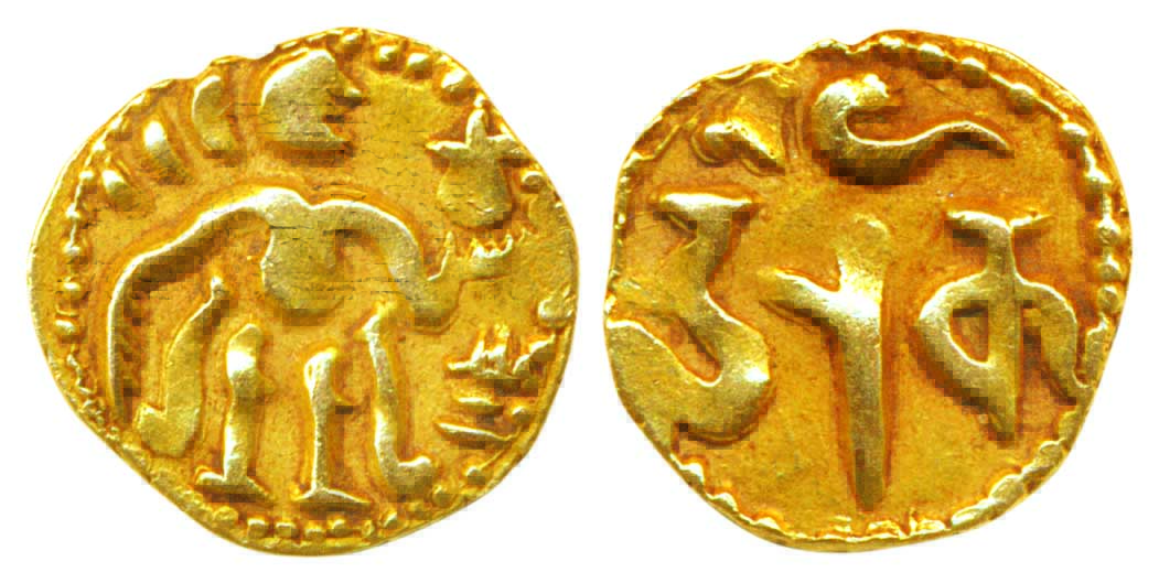 Vijayanagara Empire, Krishnadevaraya, Gold ½ Varaha, 1.71g, Obv: Lakshmi-Narayana seated, Rev: Nagari legend. Extremely fine, scarce.
