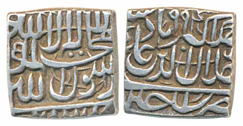 Akbar, Silver Square Rupee, 11.37g, Mintless type, Ilahi 35 (KM# 91.1). Very fine, scarce.
