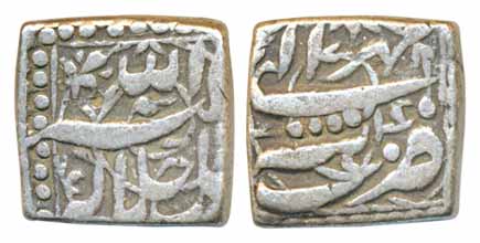 Akbar, Silver Square Rupee, 11.34g, Dar uz-zarb Ujjain Mint, AH 994 (KM# 82.7). Extremely fine, rare.