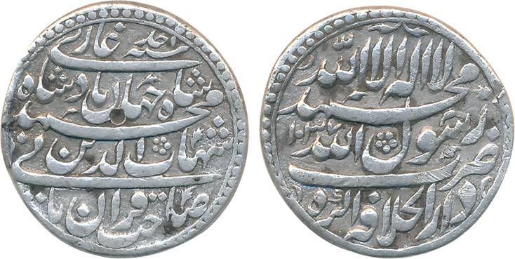 Shah Jahan, Gold Mohur, 10.89g, “Kalima- Four Line Legend” type, Ahmedabad Mint, RY 2 (KM# 255.1). Very fine+, very rare.