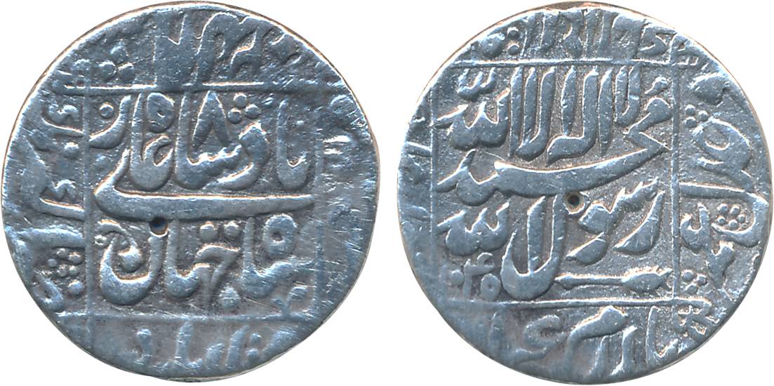 Shah Jahan, Gold Mohur, 10.94g, “Kalima” type, Burhanpur Mint, AH 1048, central inscription within dotted square, knots at corners on both sides (KM# 260.6). Extremely fine, rare.