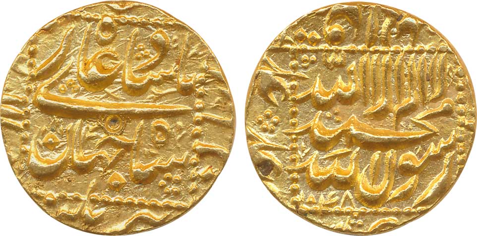 Shah Jahan, Silver Rupee, 11.20g, Burhanpur Mint, RY 4 kalima and calipha name on obv. (KM# 226.2). Uncleaned, very fine+, scarce.