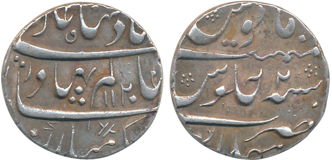Jahandar Shah, Copper Paisa, 14.17g, Ahmednagar Mint, Mint name on top of rev. Patinated, extremely fine, very rare.